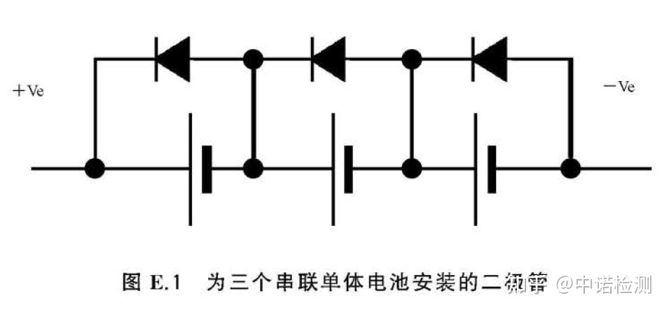 ——The electrical clearance and creepage distance specified in GB/T 3836.3 are only used to isolate the battery from other power sources, but a blocking diode as shown in Figure E.2 is installed to reduce the risk of a single fault caused by a short circuit between two diodes.