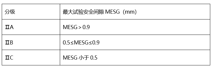 Class II explosion-proof electrical equipment according to maximum test safety clearanceMESG(mm)Divided intoIIA、IIB、IICThree levels: